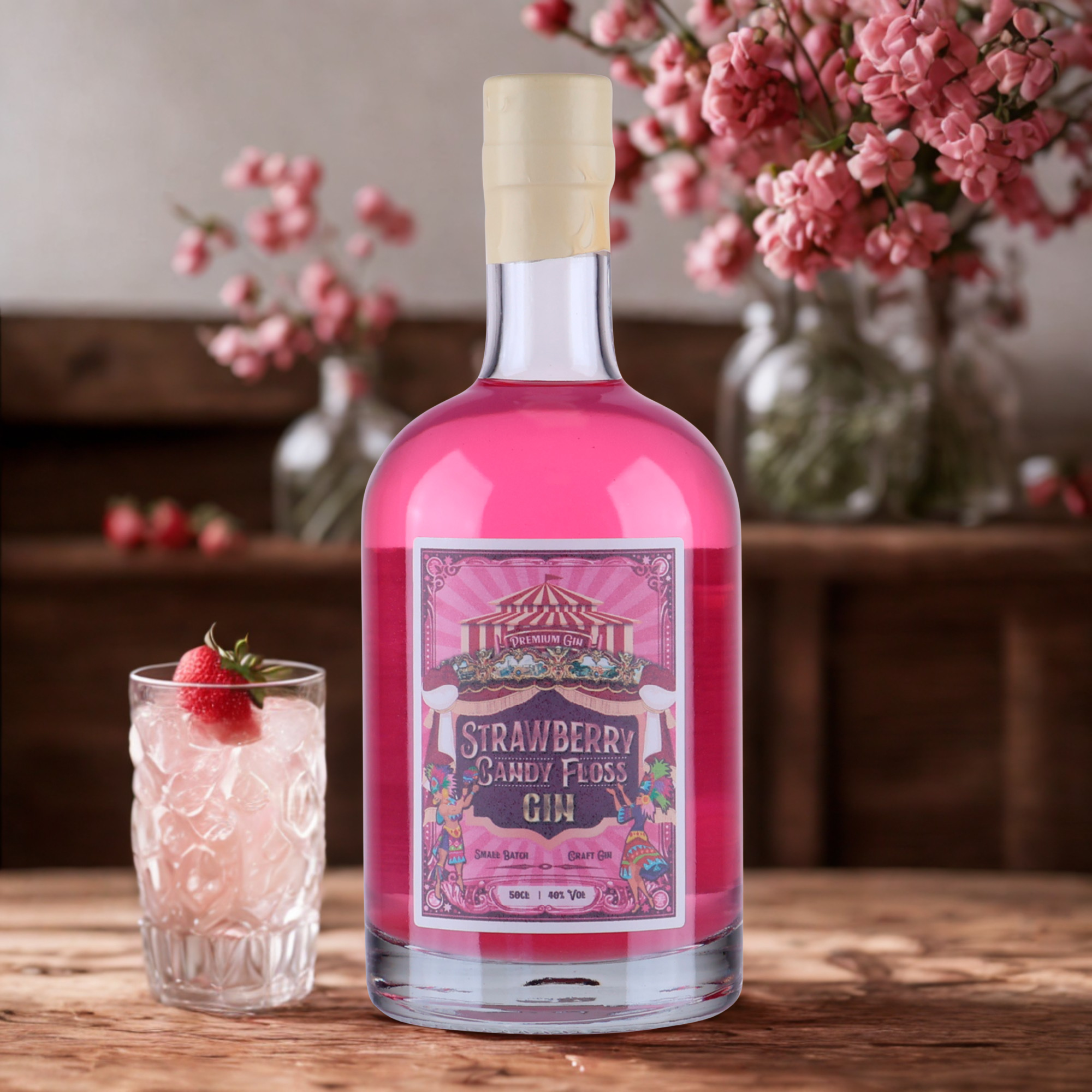 🎪 Strawberry Candy Floss Gin från The Handmade Gin Company är en rolig och unik gin som väcker minnen om sommarens nöjen. Denna brittiskt producerade gin kombinerar passion och hantverk för att skapa en oemotståndlig smakupplevelse.