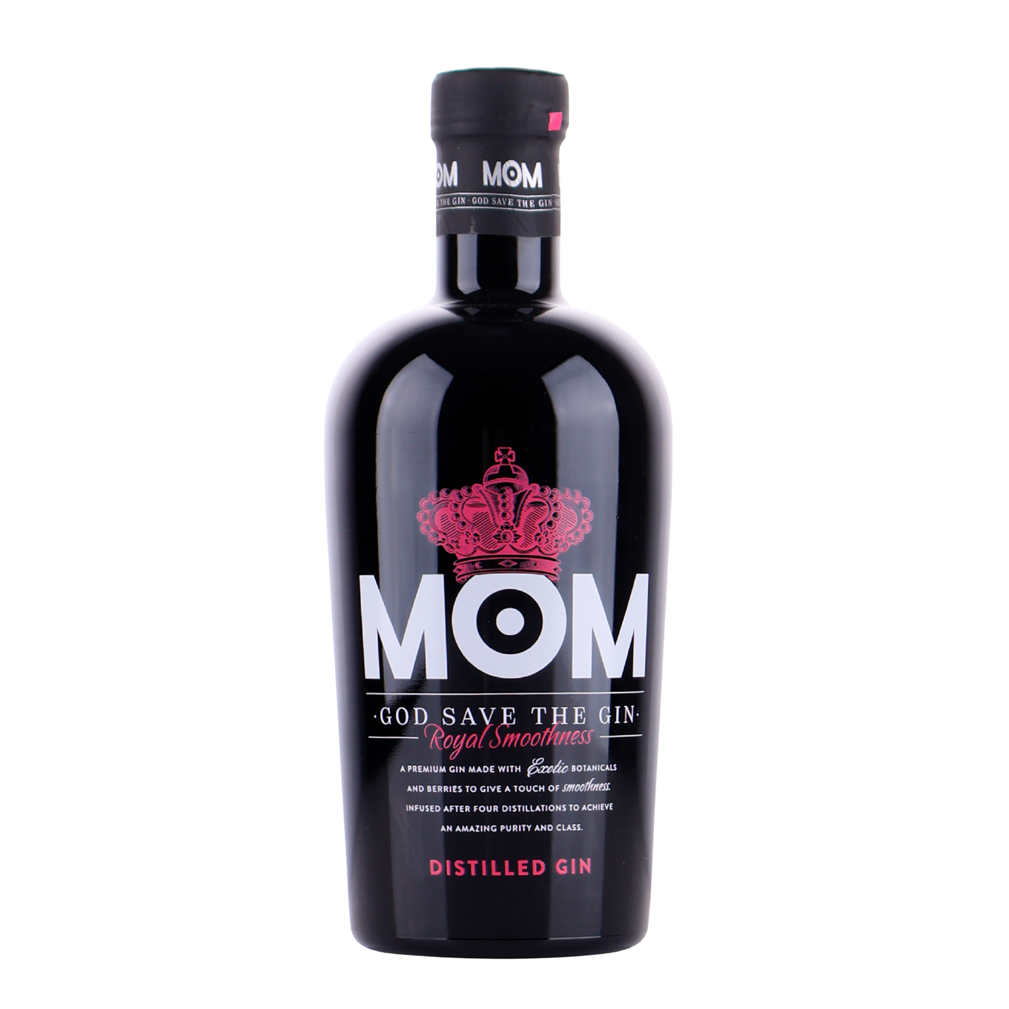 Kort om Mom Gin 39.5% 70cl Mom: God save the Gin är en läcker premium gin med smak av blandade frukter. Speciellt jordgubbar och andra röda bär är mycket framträdande i dess smak. Ginnen är en blandning av det traditionella och det moderna.