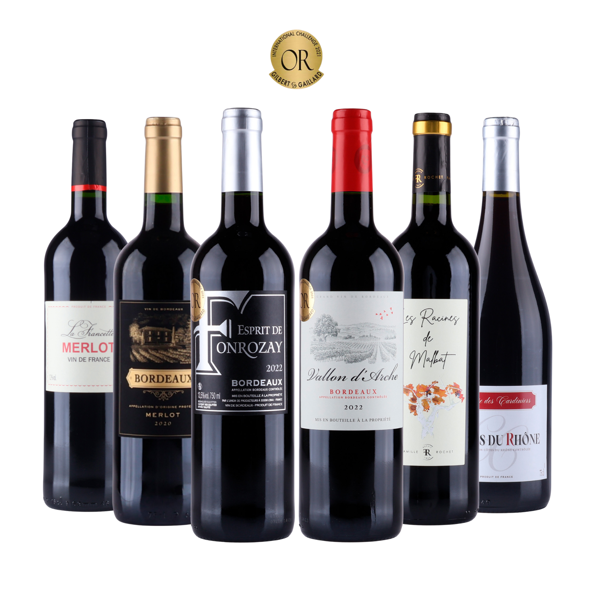 Unna dig sex handplockade franska rödviner, som alla representerar det bästa från Bordeaux och södra Frankrike. Här hittar du mjuka Merlot-viner, eleganta blandningar och fylliga flaskor med kryddiga toner – flera med guldmedaljer från Gilbert & Gaillard. Vinerna varierar från fruktiga och lätta till kraftfulla och välstrukturerade, och de är perfekta till vardagsrätter, grillat kött och ostar – eller bara som ett gott glas i gott sällskap.