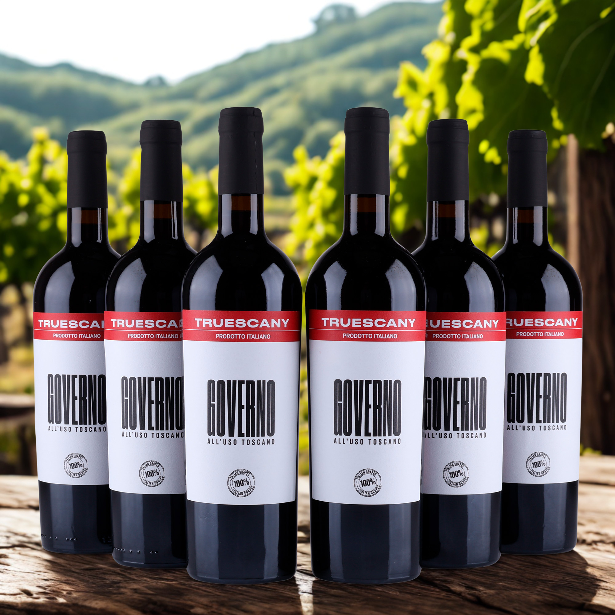 Truescany Governo är ett elegant rött vin från Toscana, tillverkat på 100% Sangiovese-druvor med den traditionella Governo-metoden. Denna teknik, som härstammar från 1300-talet, skapar ett vin med djup och komplexitet, där fruktiga och kryddiga toner balanseras av en mjuk, rund struktur.