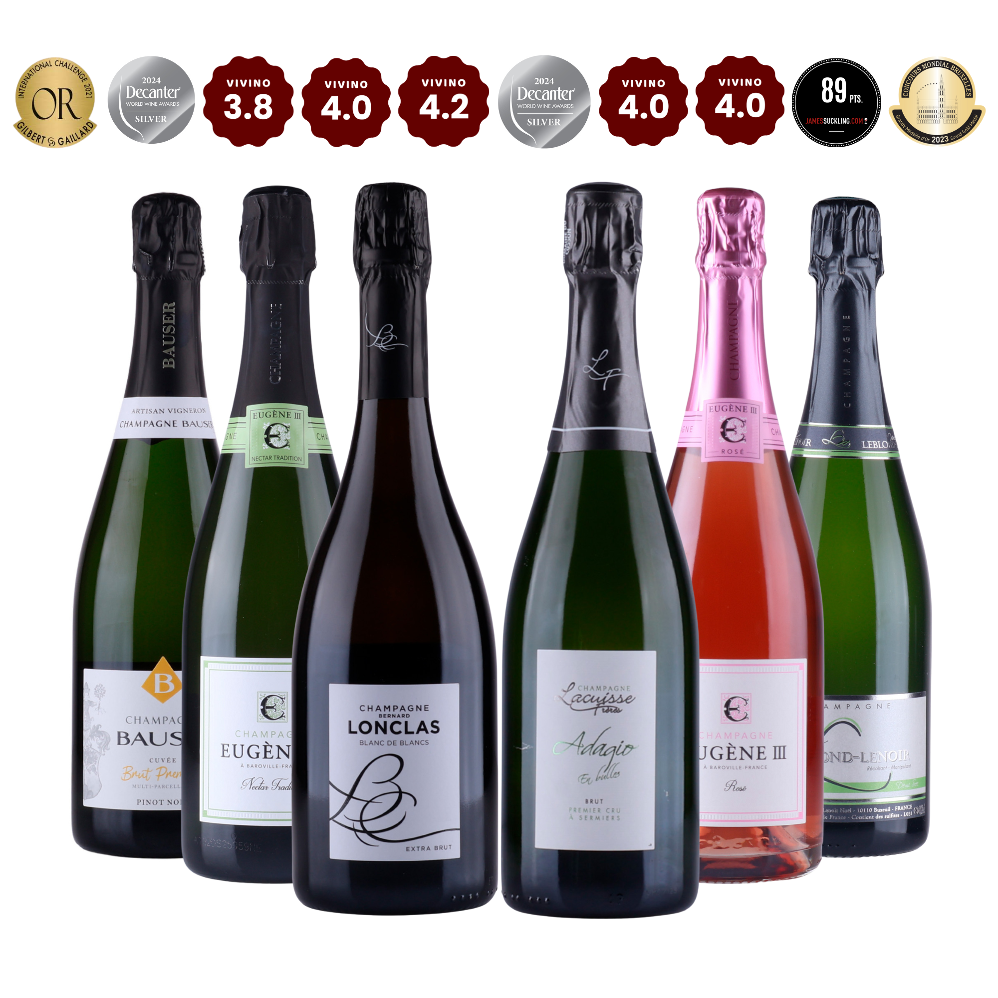 Skäm bort dig själv (eller en annan bubbelälskare) med 6 handplockade champagner i toppklass – inkl. vinnare av guld- och silvermedaljer 🥇🥂 Från frisk Blanc de Blancs till fylliga demi-sec och elegant rosé – här får du smak, finess och fest i varje flaska. Perfekt för firande, skämma bort eller som årets mest bubblande presentidé!