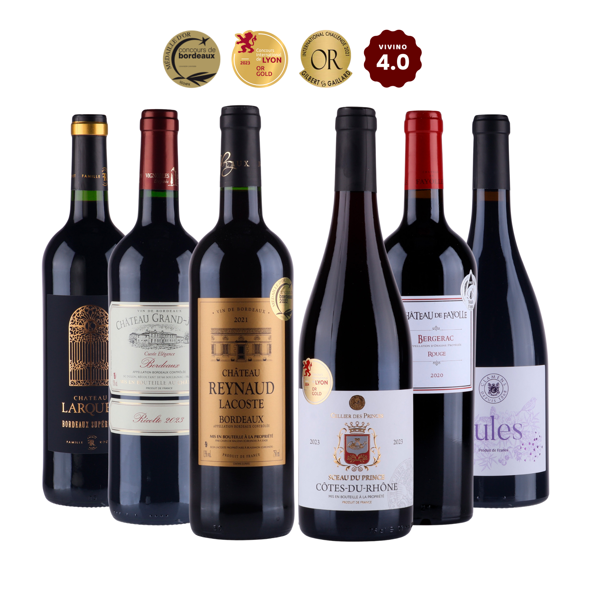 Välkommen till en förstklassig vinupplevelse! Denna exklusiva låda innehåller toppviner med guld- och silverutmärkelser, noggrant utvalda för högsta kvalitet och exceptionellt värde. Varje flaska är en smakresa genom världens främsta vinregioner – en inbjudan att upptäcka det bästa vinvärlden har att erbjuda!