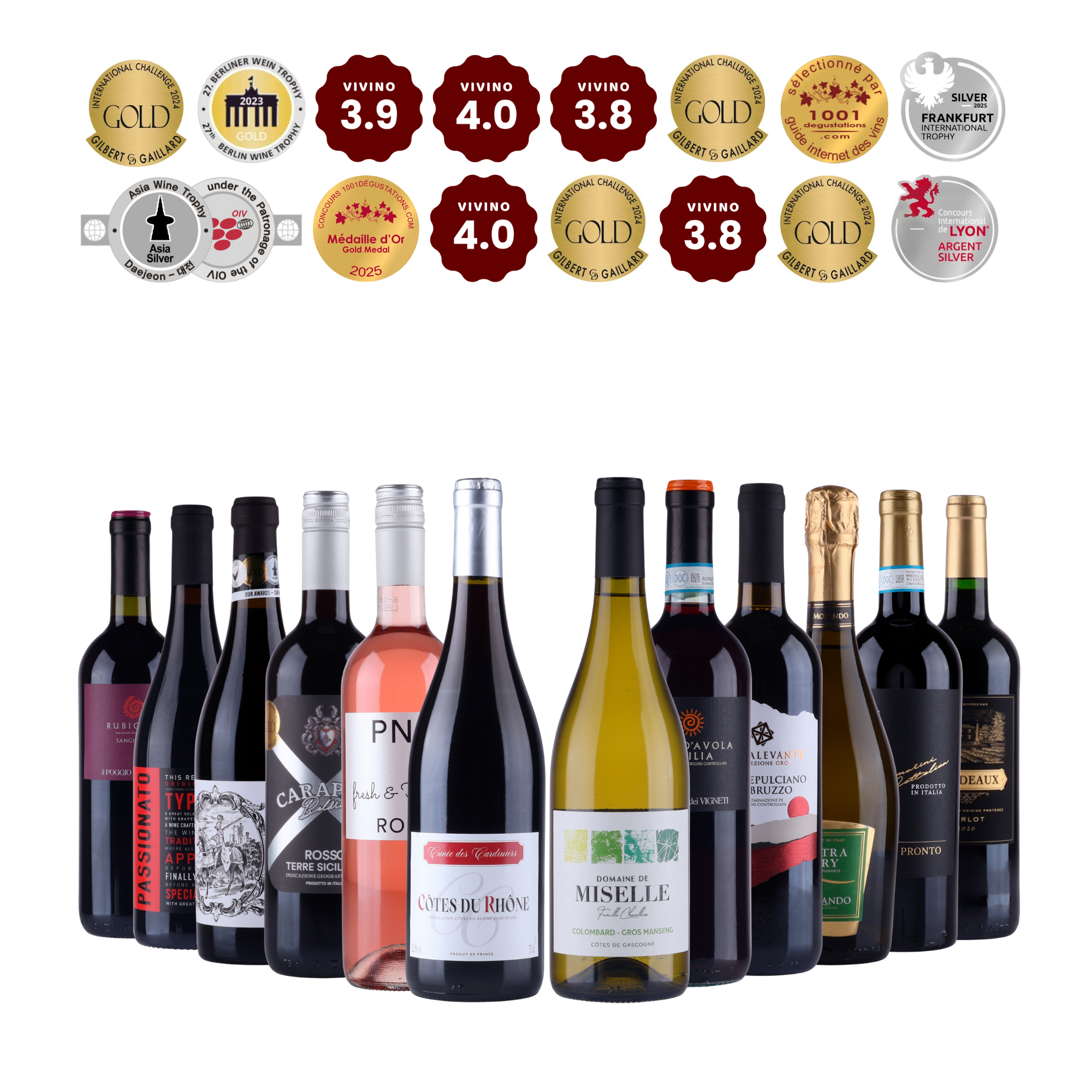 Vår lyxiga 12 st. låda är sammansatt för dig som vill ha viner med dokumenterad kvalitet. Här får du ett urval av viner som tillsammans har uppnått ett imponerande antal medaljer vid internationella provningar och höga Vivino-poäng från vinälskare världen över.