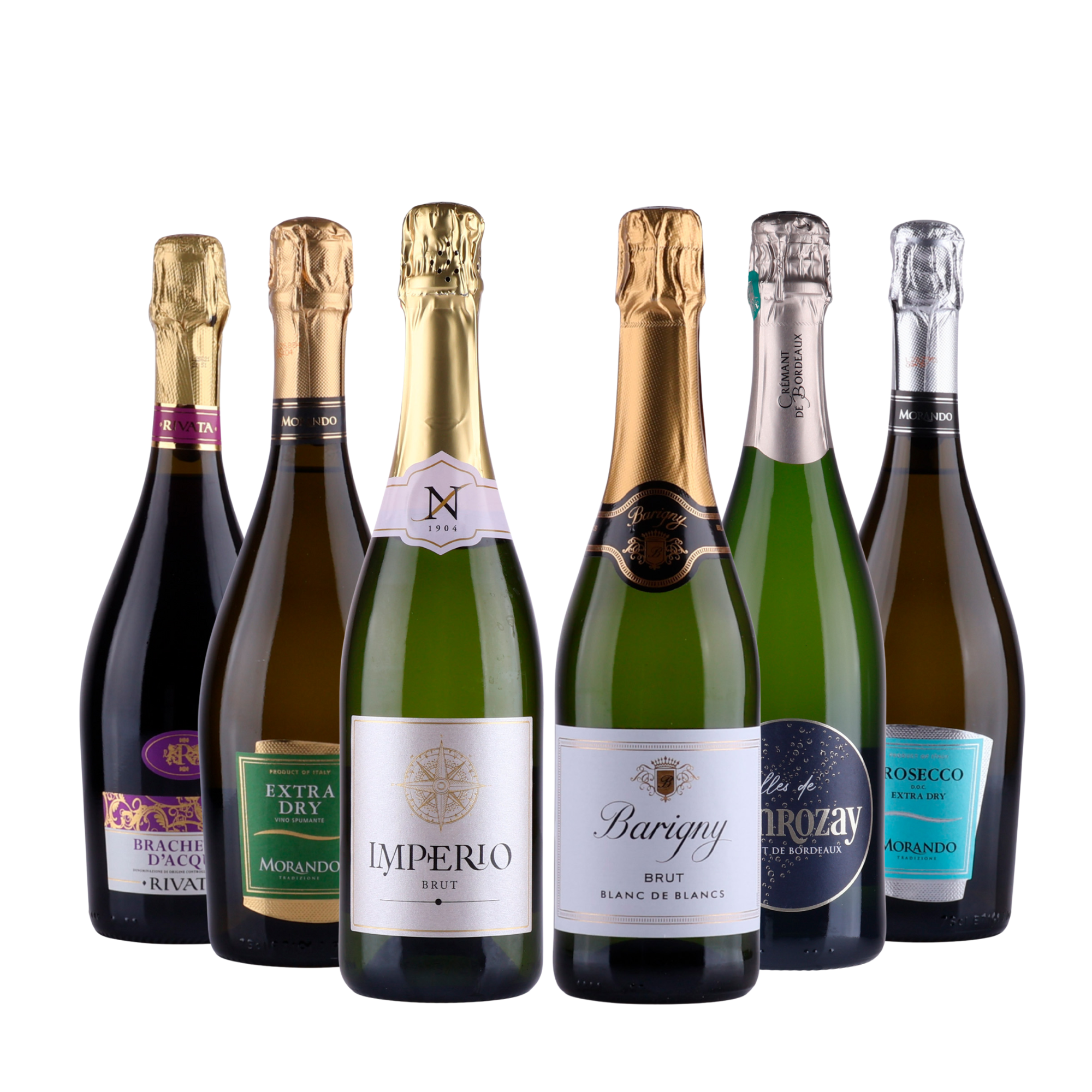 Upplev Vinhusets handplockade låda med sex olika mousserande viner från Italien och Spanien – inklusive färsk Prosecco, söt Moscato, krämig spumante och en underbar rosé. Perfekt som välkomst, firande eller som aperitif på terrassen.