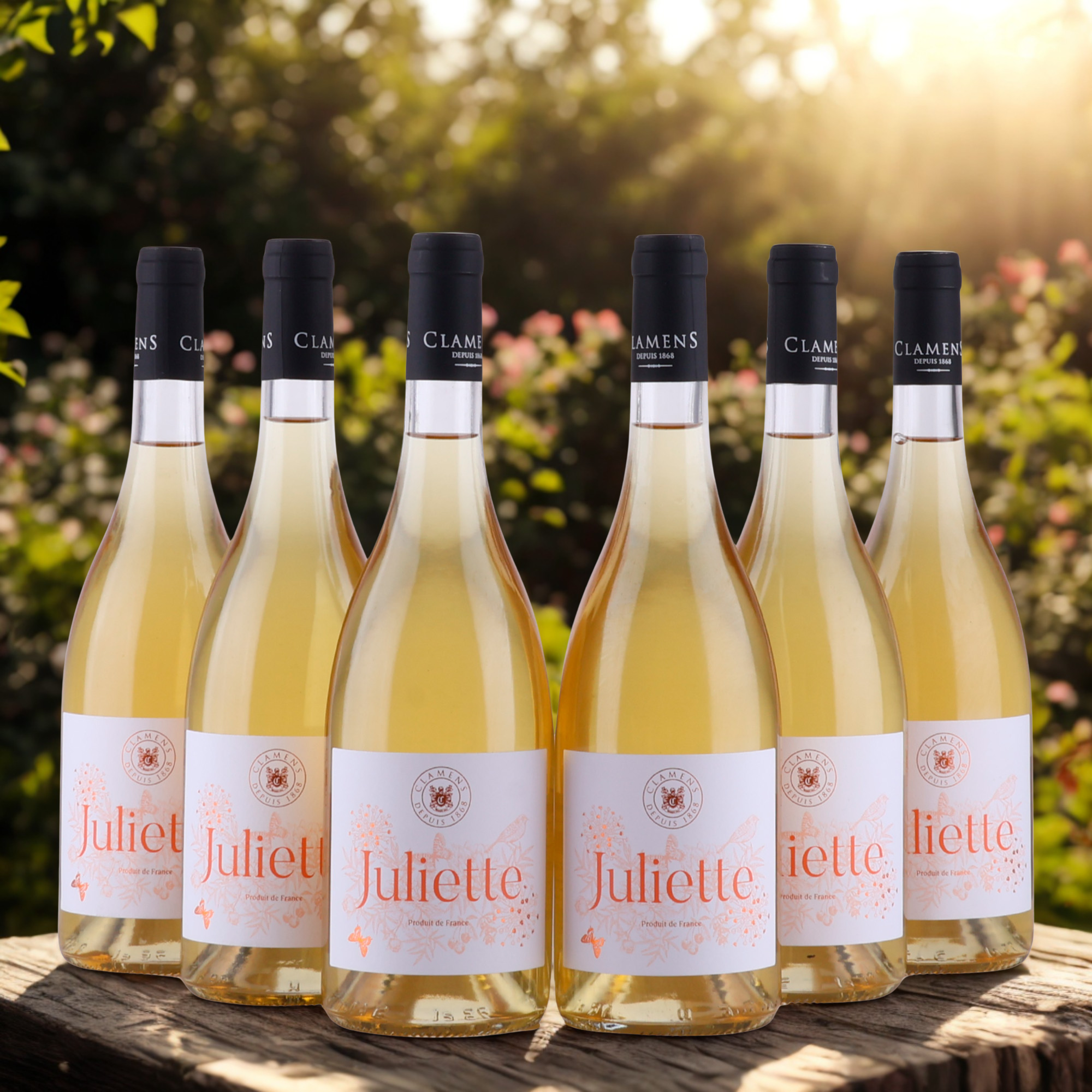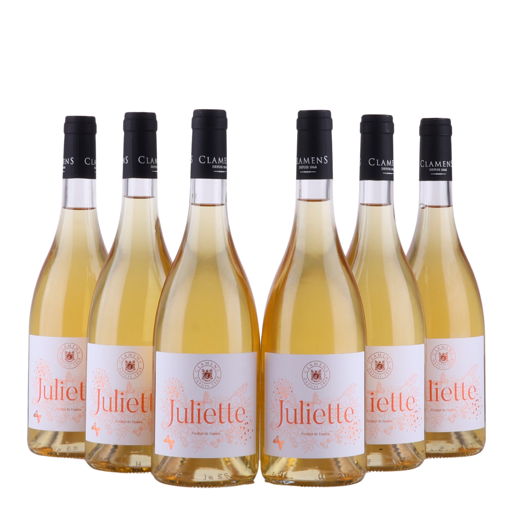 Château Clamens ligger i Fronton AOC, 30 km norr om Toulouse, och är känt för sitt unika läge på sandig ler-boulbènes-jord längs Tarn-floden, vilket är idealiskt för odling av druvor under södra Frankrikes soliga klimat. Egendomen har varit under Stefan Heppelmanns ledarskap sedan 2012. Juliette är gjord av 100% Gros Manseng och presenterar en vacker klar och strålande blekgul färg, med en generös och syrlig smak. Den har söta och fruktiga noter med en uppfriskande finish.