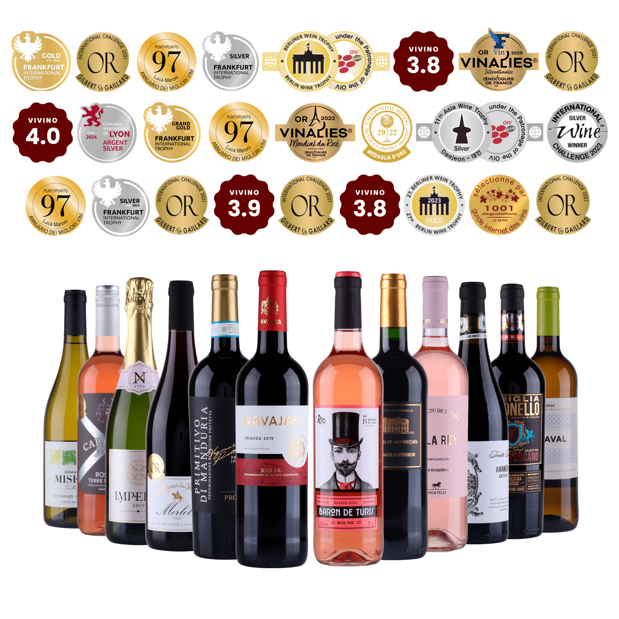 Varje flaska är utvald för sin unika profil, så du får en harmonisk blandning av friska, krispiga vita viner, eleganta roséer, fylliga röda viner och mousserande bubblor som tillsammans skapar en rik och mångsidig smakupplevelse. Perfekt för mysiga kvällar hemma, middagsbjudningar med vänner och familj eller som inspiration när du vill upptäcka nya favoriter och utforska vinets många nyanser.