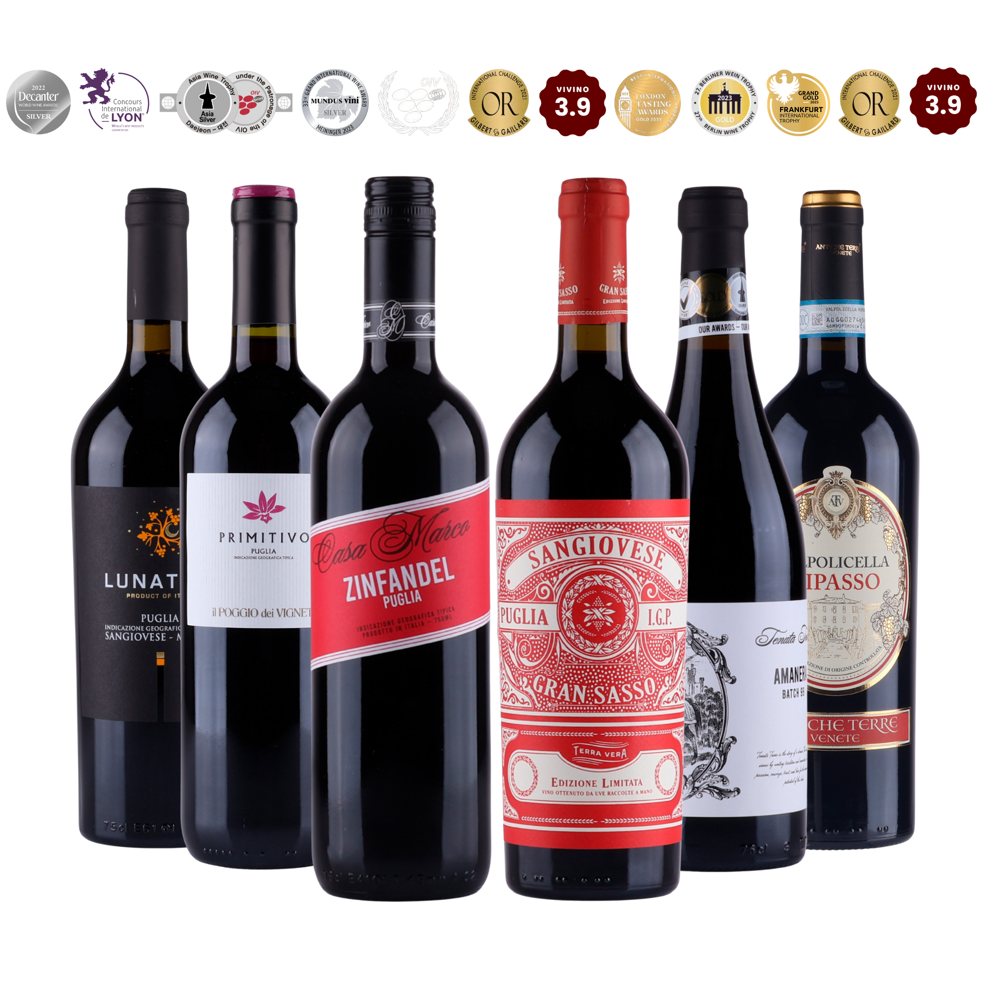 Upptäck Italiens bästa rödviner i en exklusiv samling från landets mest kända vinregioner. Här möts elegans, kraft och karaktär – från sammetslena Sangiovese och fruktig Zinfandel till fylliga appassimento-viner. Perfekt för dig som vill njuta av italiensk vintradition när den är som allra bäst – till middagar, festliga tillfällen eller bara för att unna dig själv något extra.