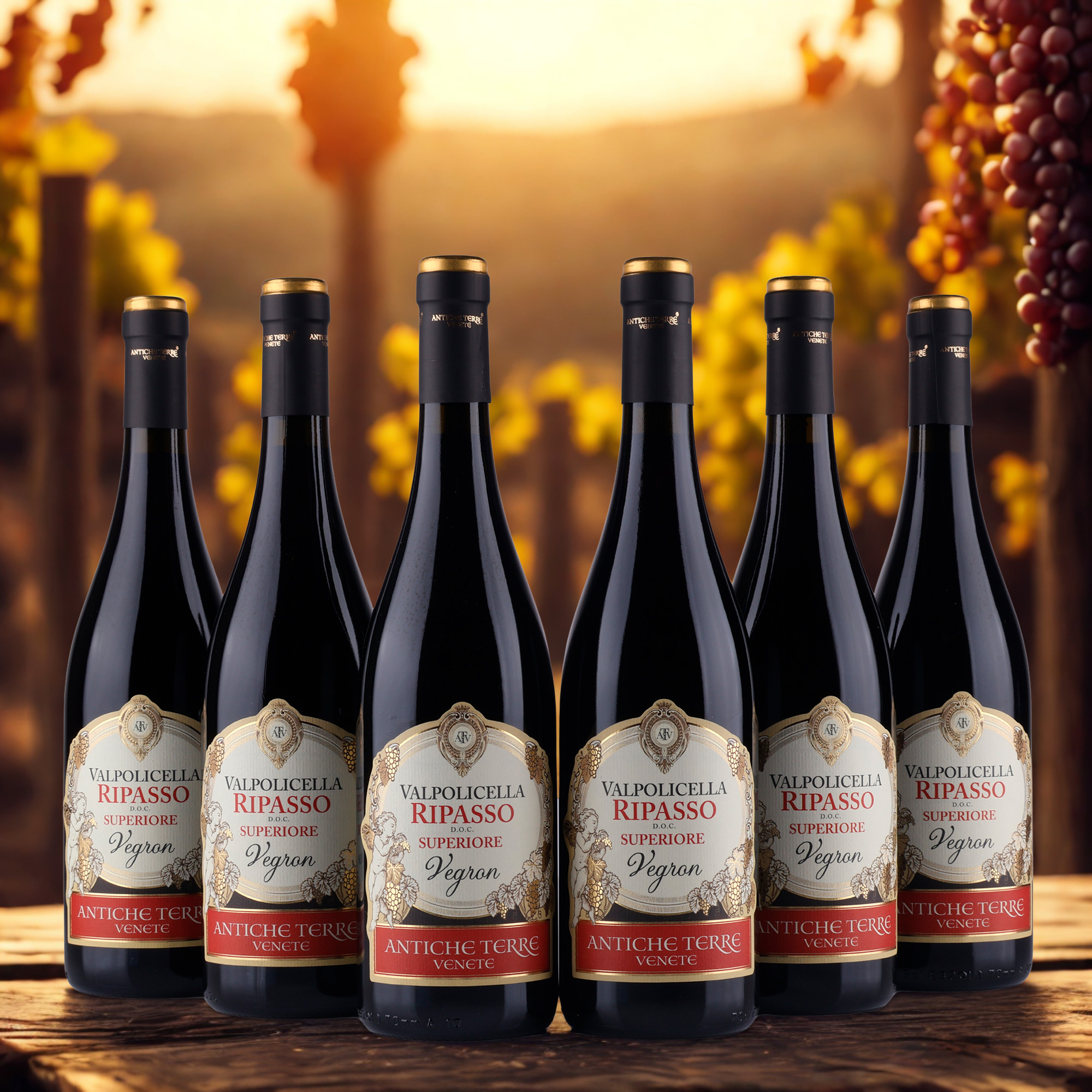 Ripasso Valpolicella Superiore D.O.C. "Antiche Terre" är ett kvalitetsvin från det erkända vinhuset Antiche Terre Venete, beläget i Veneto-regionen i Italien. Vinet är känt för sin djup och komplexitet, som uppnås genom ripasso-metoden, där vinet genomgår en andra jäsning med druvskalen från Amarone-produktionen. Denna metod tillför vinet extra rikedom och karaktär.